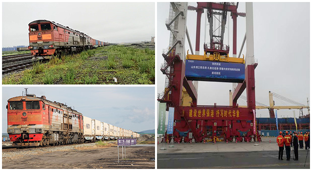 2020年,圓滿完成琿春-扎魯比諾港-青島港內(nèi)貿(mào)貨物跨境運(yùn)輸航線首航、啟動琿春—馬哈林諾鐵路口岸經(jīng)俄遠(yuǎn)東哈桑支線至朝鮮豆?jié)M江、啟動俄羅斯-琿春海洋班列